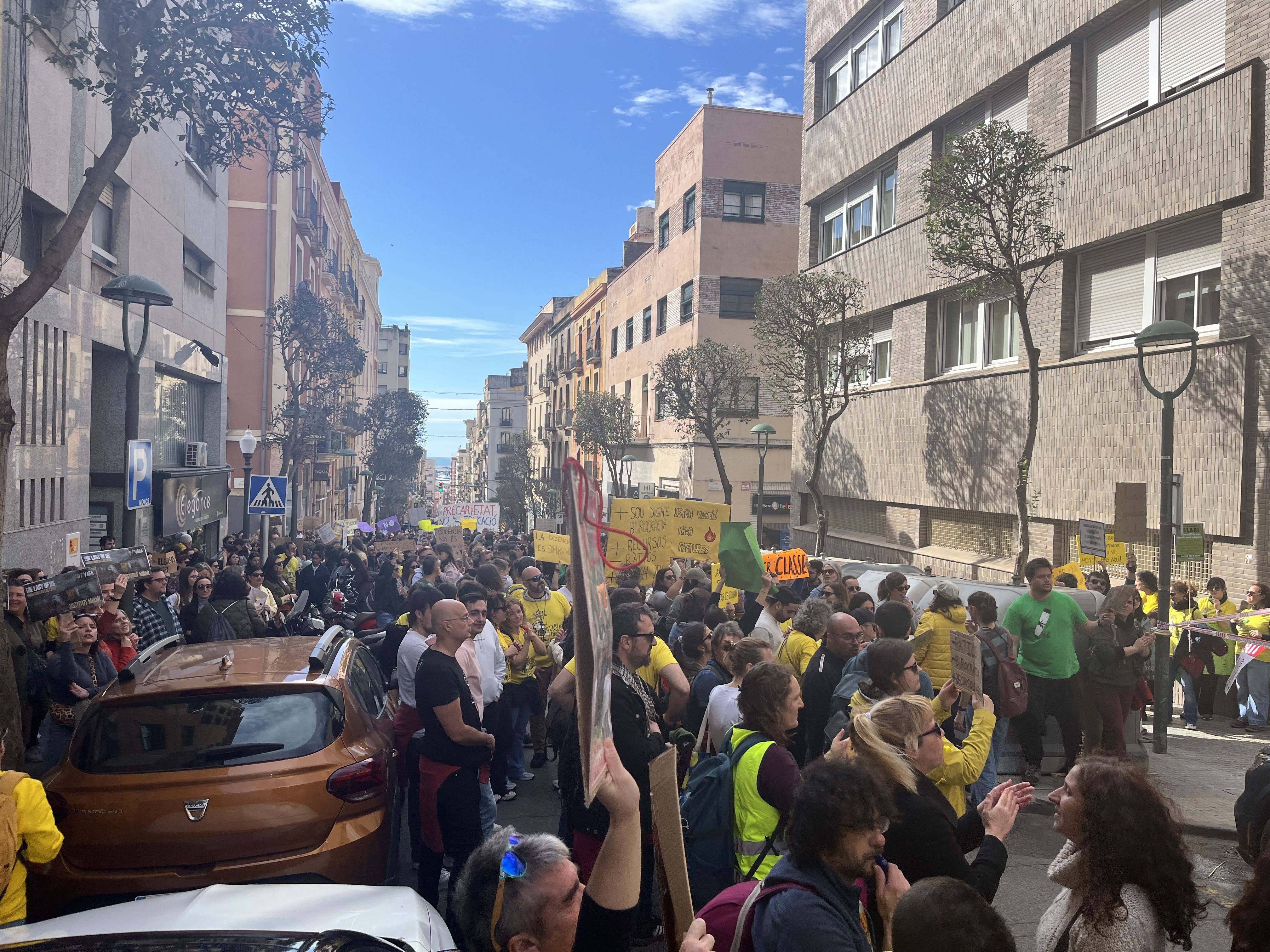 Després han seguit la seva marxa alçant les pancartes i banderes fins als Serveis Territorials d'Educació amb els crits de "Vergonya" i "Niubó dimissió", fent referència a la consellera d'Educació i Formació Professional, Esther Niubó.