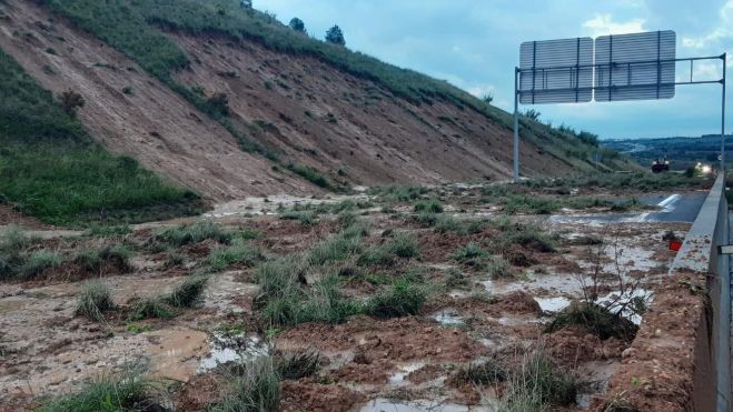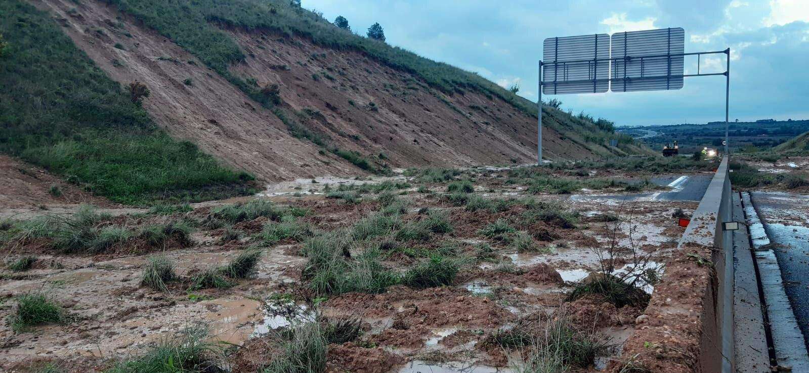 Les fortes pluges arran del pas de la DANA per la capital de l'Alt Camp han causat un despreniment del talús a l'A-27 a l’altura de Valls.