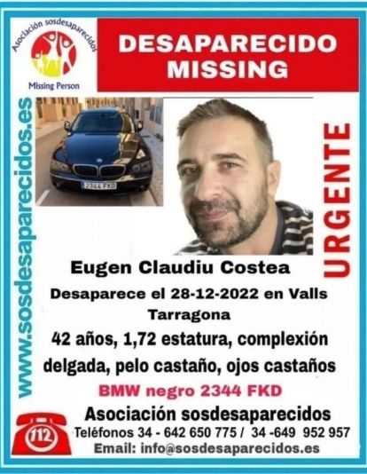 El seu nom és Eugen Claudiu Costea, té 42 anys, fa d'alçada 1,72 metres, pèl i ulls castanys i de complexió prima. A més, té un vehicle BMW de color negre amb matrícula 2344FKD