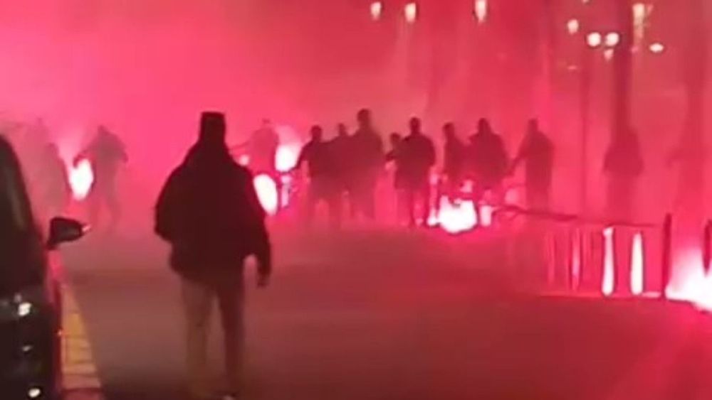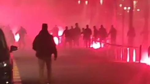 Segons s'observa en diversos vídeos que ja corren per les xarxes socials, aficionats de tots dos equips s'han engrescat en una batalla campal que ha implicat el llançament de bengales que ha convertit els carrers en un infern per als vianants i veïns de la zona.