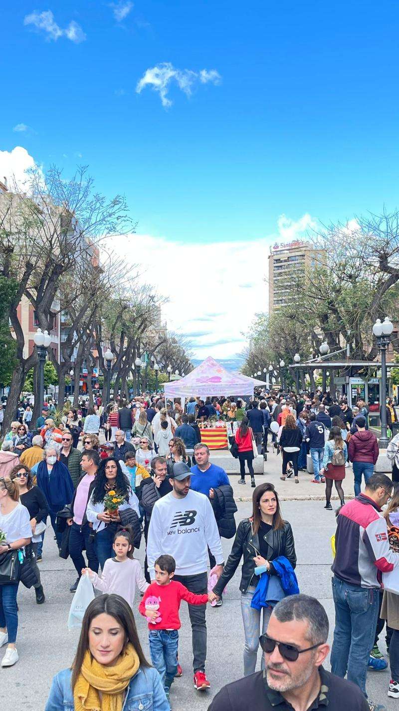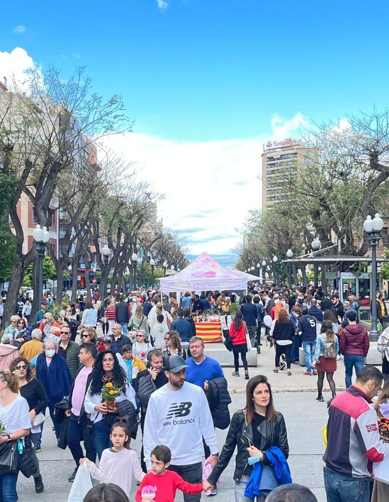 Tarragona reviu una festa de Sant Jordi com les d'abans de la pandèmia. La Rambla Nova repeteix avui com a centre neuràlgic de la festa del llibre i la rosa més de 118 parades que han obert a les 9 hores i tancaran a les 20.