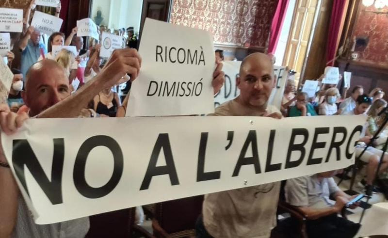 Totes aquestes persones s'han posat a fer els càntics de dimissió quan han vist que Ricomà ha fet una evasiva total a totes les preguntes sobre el projecte que l'oposició l'hi ha realitzat després d'escoltar les opinions dels veïns. Entre les preguntes estaven, entre d'altres, si considerava que l'alberg era la millor solució quan hi ha 8.000 places per llar d'avis.