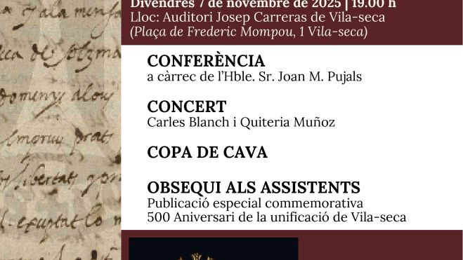 L’Ajuntament de Vila-seca commemorarà aquest divendres, 7 de novembre, el cinquè centenari de la unificació del municipi, que va tenir lloc l’any 1525 amb la fusió de Vila-seca del Comú i Vila-seca de Solcina, impulsada per l’arquebisbe Pere de Cardona.