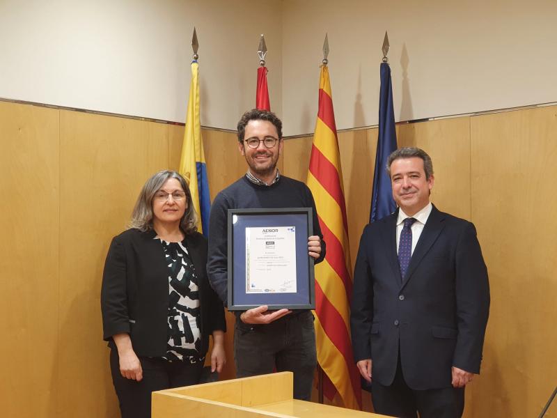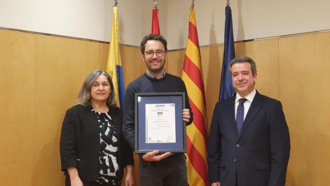 Aquest matí, el Director de la Regió Mediterrània d’AENOR (Asociación Española de Normalización y Certificación) Ángel Luís Sánchez, ha lliurat a l’alcalde de Vila-seca, Pere Segura, el Certificat ISO-AENOR (ER-0644/2021). A l’acte també hi ha assistit la regidora d’Acció Social, Lucía Teruel, els responsables de Desenvolupament de negoci d’AENOR i diversos tècnics de l’Ajuntament de Vila-seca,