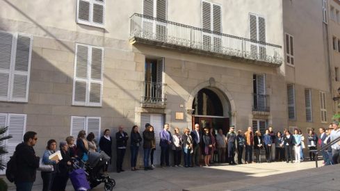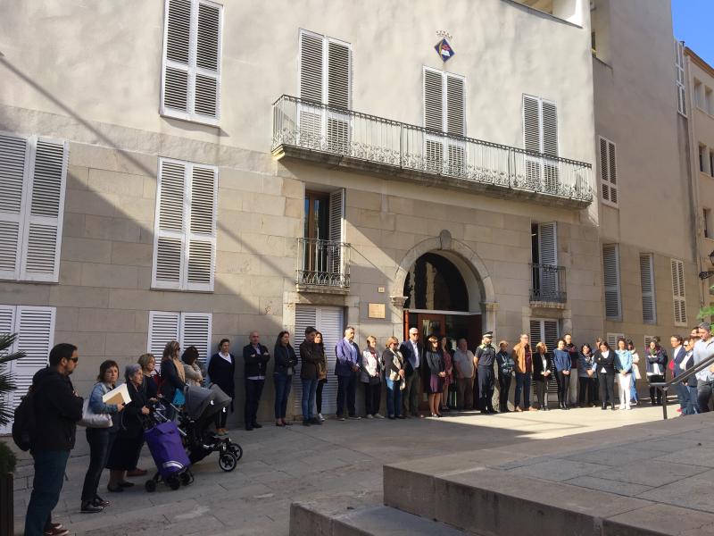 Regidors de la Corporació municipal, treballadors de l'Ajuntament i diversos vila-secans i vila-secanes han guardat un minut de silenci a la porta principal de l’Ajuntament.