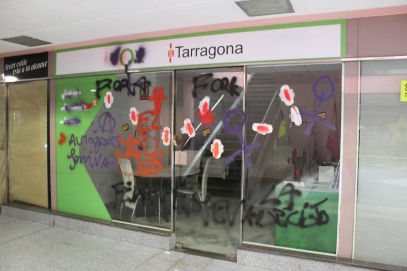 Com a protesta a les idees del partit d'ultradreta, els manifestants han fet pintades i han enganxat compreses tacades als vidres de la seu.